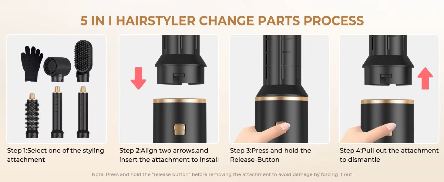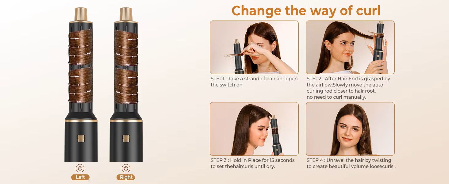- Conseils d'Utilisation: Plus vous utilisez un air styler 5 en 1 long, plus la température du seche cheveux 5 en 1 est élevée. Portez des gants lorsque vous utilisez le brosse soufflante ou changez de sèche-cheveux pour éviter les brûlures. seche cheveux boucleur Plusieurs accessoires pour brosse sèche-cheveux nécessitent plusieurs exercices pour obtenir le meilleur effet de boucle. L'ensemble air brush combine un sèche-cheveux avec la conception populaire de la tête de brosse souflante à air chaud. Vous pouvez le combiner avec différentes têtes de brosse pour créer des looks tendance