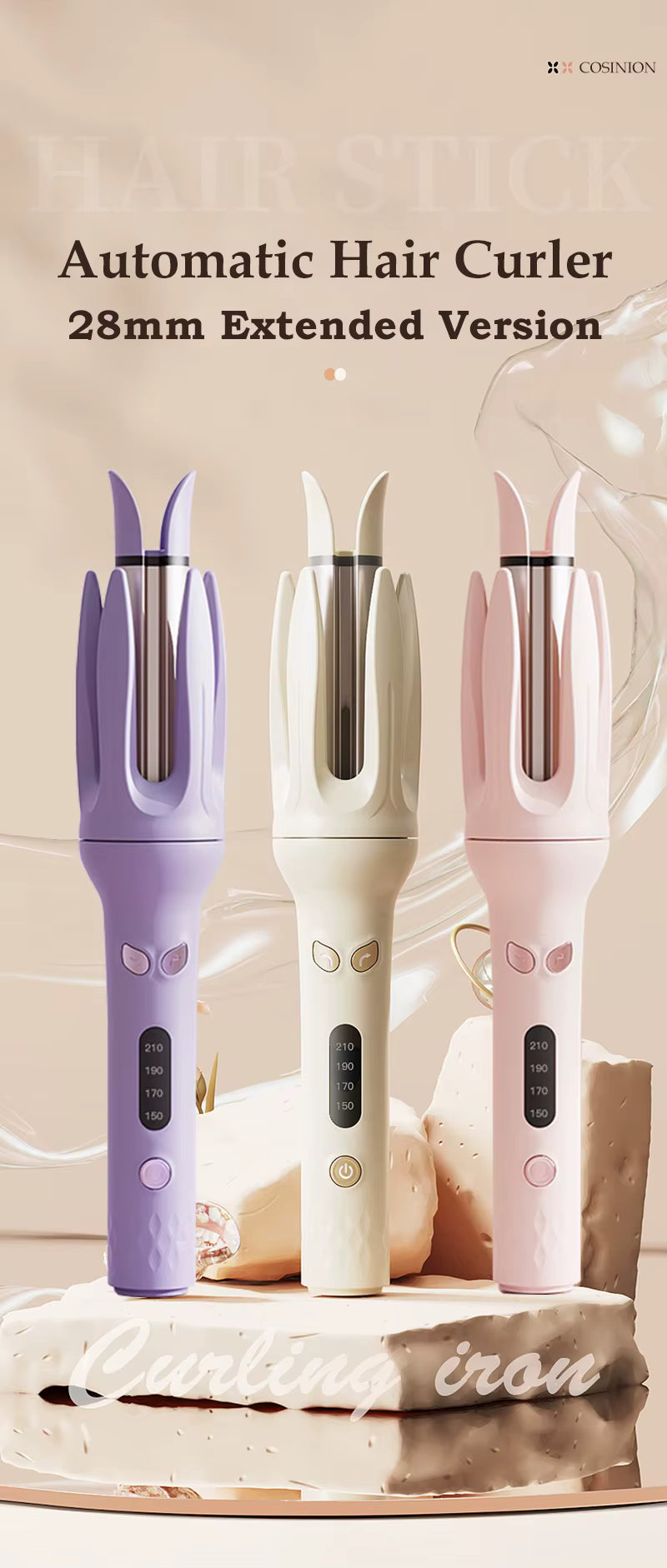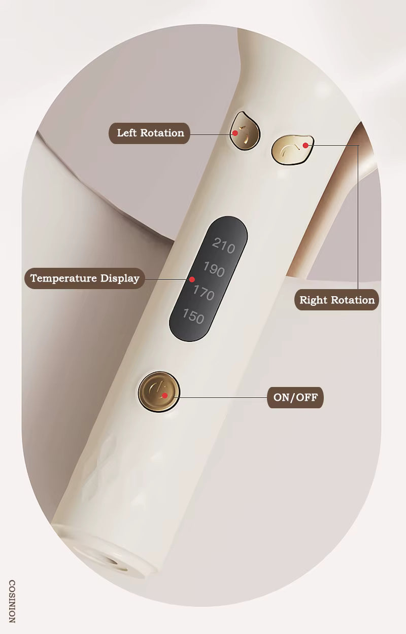 Fer à boucler automatique 28 mm à ions négatifs, électrique, en céramique, rotatif, anti-emmêlement, pour boucles et ondulations.
