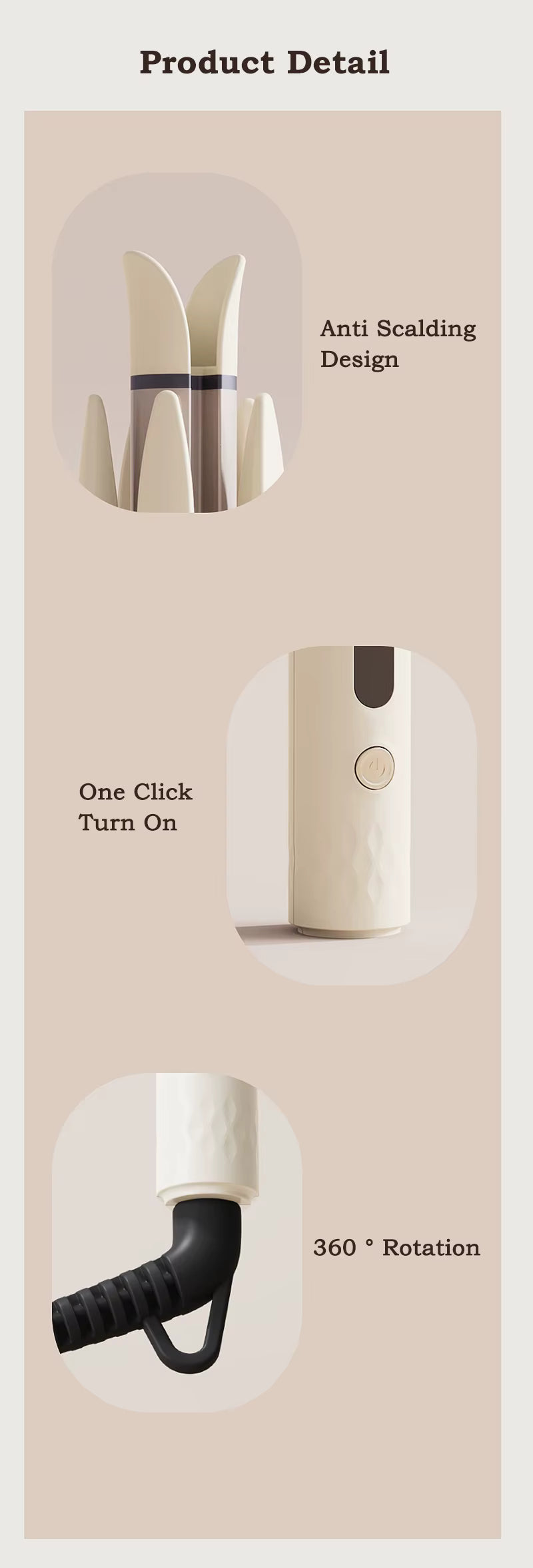 8. Détection et réinitialisation automatiques de la position : une fois le bouclage terminé, il détectera et réinitialisera automatiquement sa position, sans tirer les cheveux ;